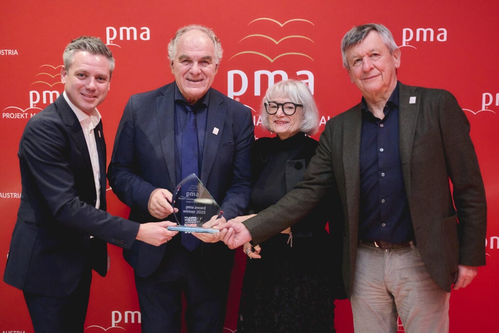 com_unit Geschäftsführerin Susanne Wegscheider mit Hanna Krassler und Thomas Prammer von pma – Projekt Management Austria. Foto © pma/Martin Hörmandinger