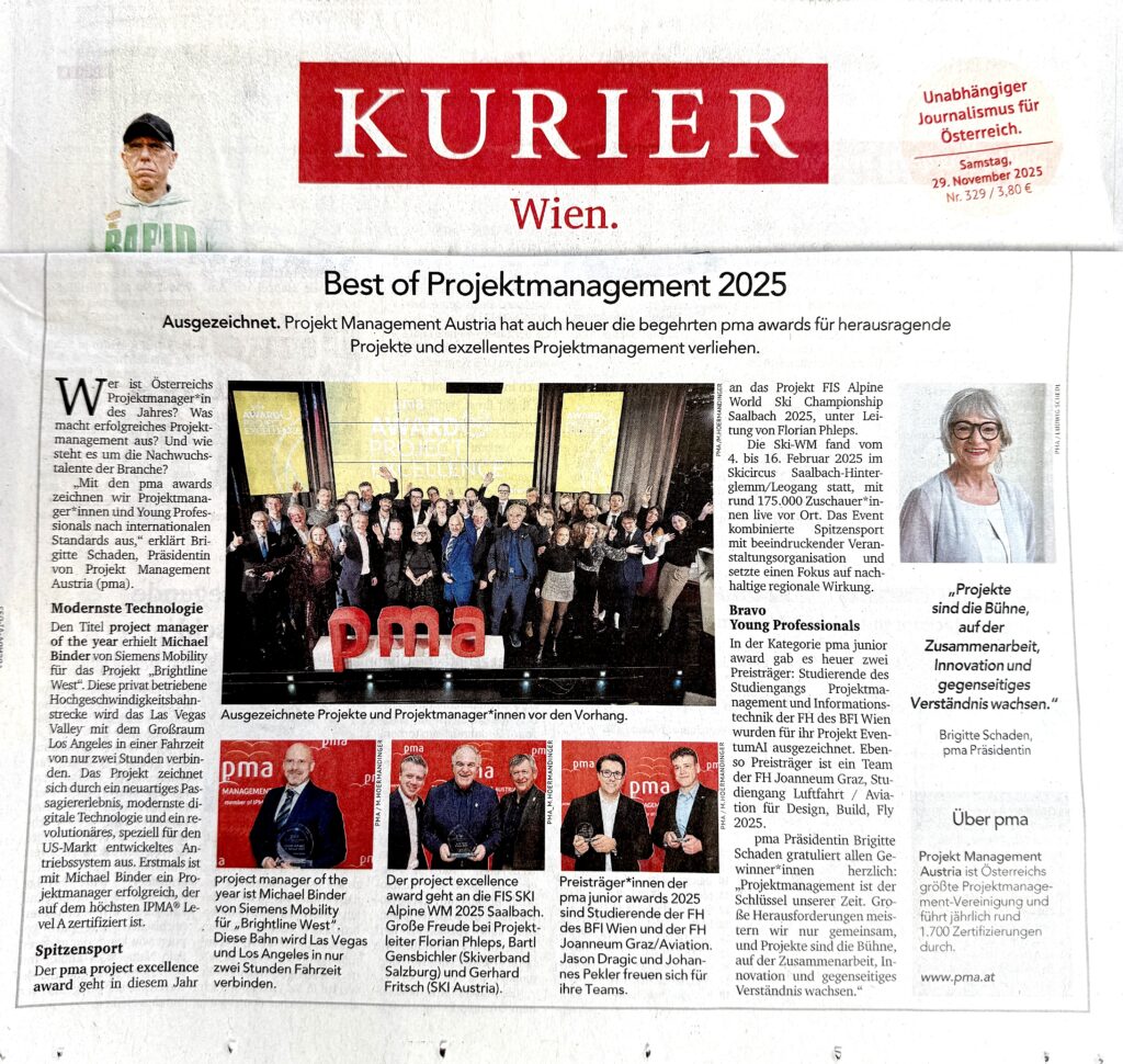 Projekt Management Austria (pma) hat auch heuer wieder die begehrten pma awards für herausragende Projekte und exzellentes Projektmanagement verliehen.