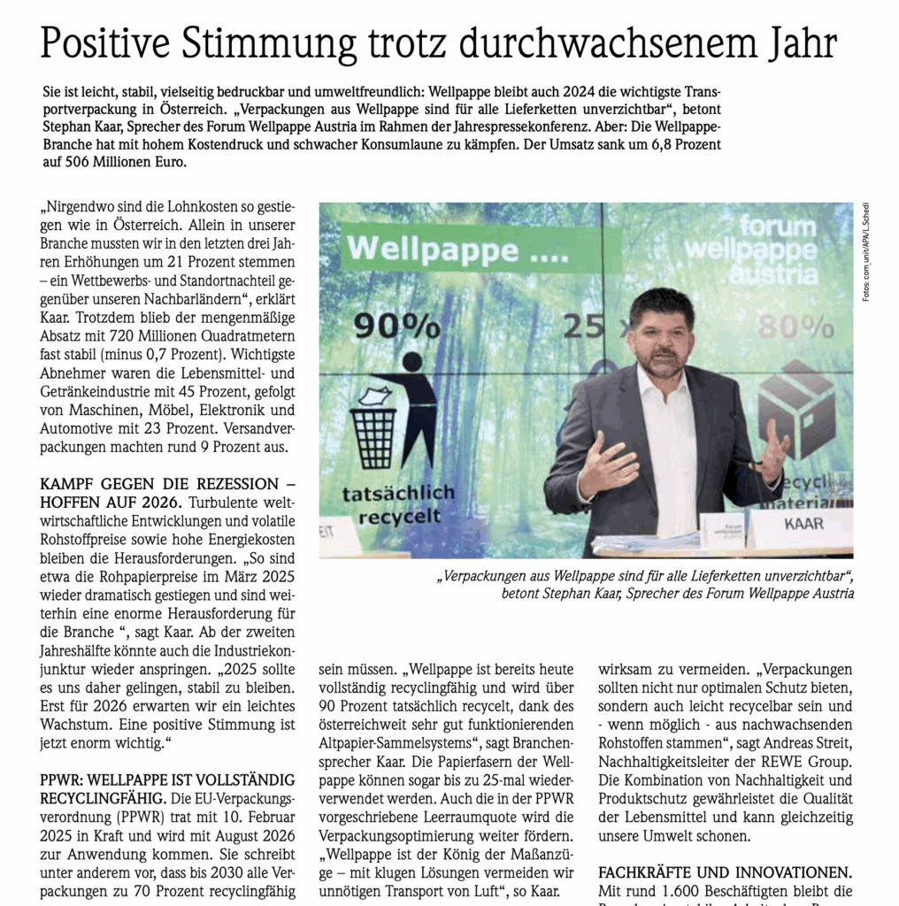 Die Key Message in der Tageszeitung. Kunde: Wellpappe Austria