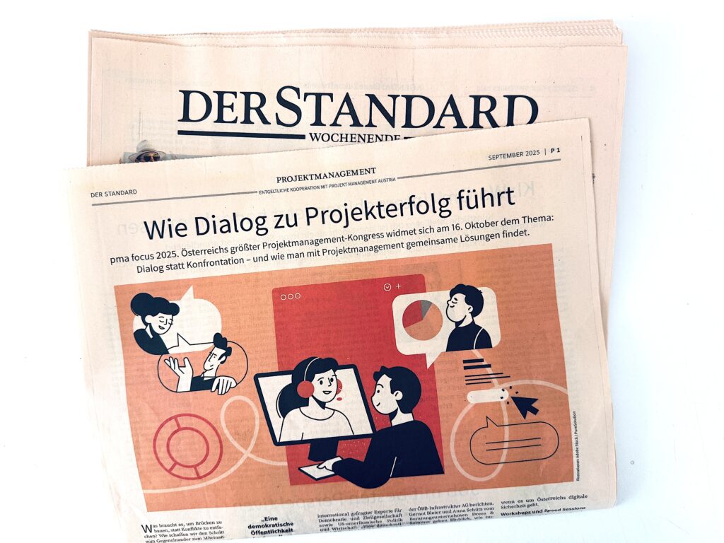 Entgeltliche Medienkooperation zum Thema Projektmanagement im Layout des DER STANDARD. Für unseren Kunden pma – Projekt Management Austria.